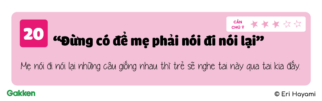 Nếu mẹ cứ nhắc con một câu giống hệt nhau hết ngày này qua ngày khác, con sẽ không muốn nghe nữa đâu. Lúc đó, mẹ sẽ phải thốt lên rằng "Đừng có bắt mẹ nói nhiều lần!"