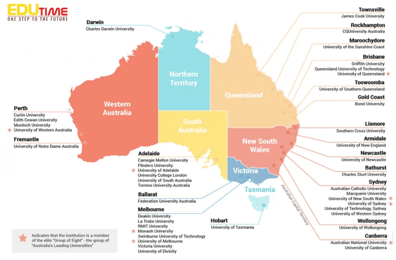 Tư vấn du học Edutime là đối tác và đại diện tuyển sinh của hàng trăm trường đại học Úc, trong đó có nhiều trường lớn, điều này sẽ giúp học sinh, sinh viên có nhiều lựa chọn trường và ngành học chất lượng.