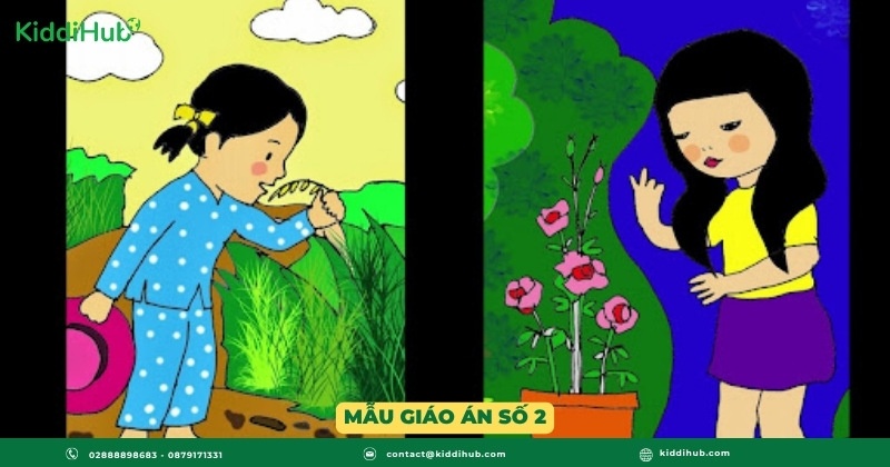 Cô hỏi: “Các con đã sẵn sàng chưa? Bây giờ chúng ta cùng bắt đầu phần 1: Cùng bé quan sát nhé!”