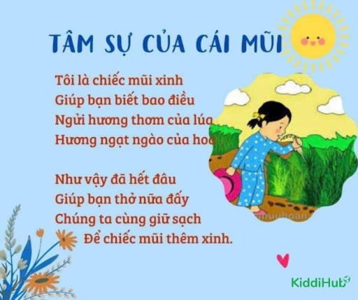 Cô hỏi: "Các con có biết bài hát hay bài thơ nào nói về cái mũi không?"