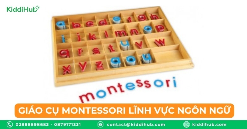 Khu vực Ngôn ngữ trong lớp học Montessori tạo điều kiện để trẻ phát triển kỹ năng đọc và viết từ sớm, thông qua việc cung cấp nhiều hoạt động phong phú giúp trẻ cải thiện khả năng giao tiếp và nhận diện âm thanh. Các hoạt động trong chương trình Ngôn ngữ của Montessori bao gồm việc nhận diện âm thanh, học các chữ cái và âm thanh tương ứng, kết nối từ với các đồ vật hoặc hình ảnh, thực hành với danh sách từ, rèn luyện kỹ năng viết, xây dựng câu văn, học ngữ pháp và thực hiện các bài đọc thầm.