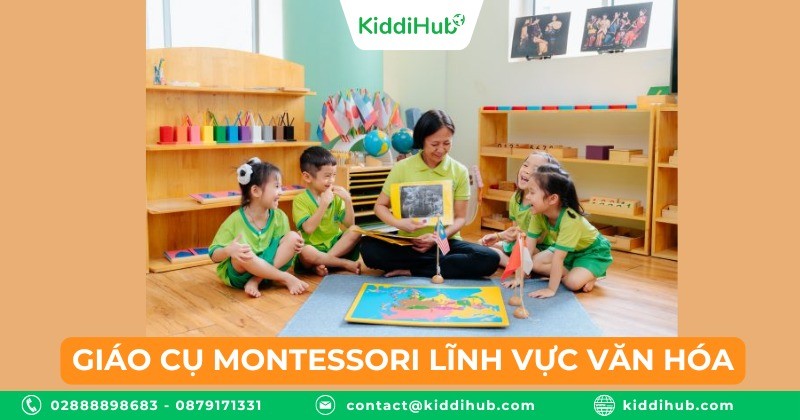 Tại khu vực Văn hóa, trẻ được trực tiếp tương tác với các vật dụng thực tế và mô hình sinh động, liên quan đến lĩnh vực như Lịch sử giúp trẻ dễ dàng tiếp cận và hiểu các khái niệm trừu tượng trong môn học. Những hoạt động với giáo cụ Montessori trong khu vực này kích thích sự tò mò và niềm đam mê khám phá, khuyến khích trẻ tìm hiểu về các chủ đề về lịch sử.