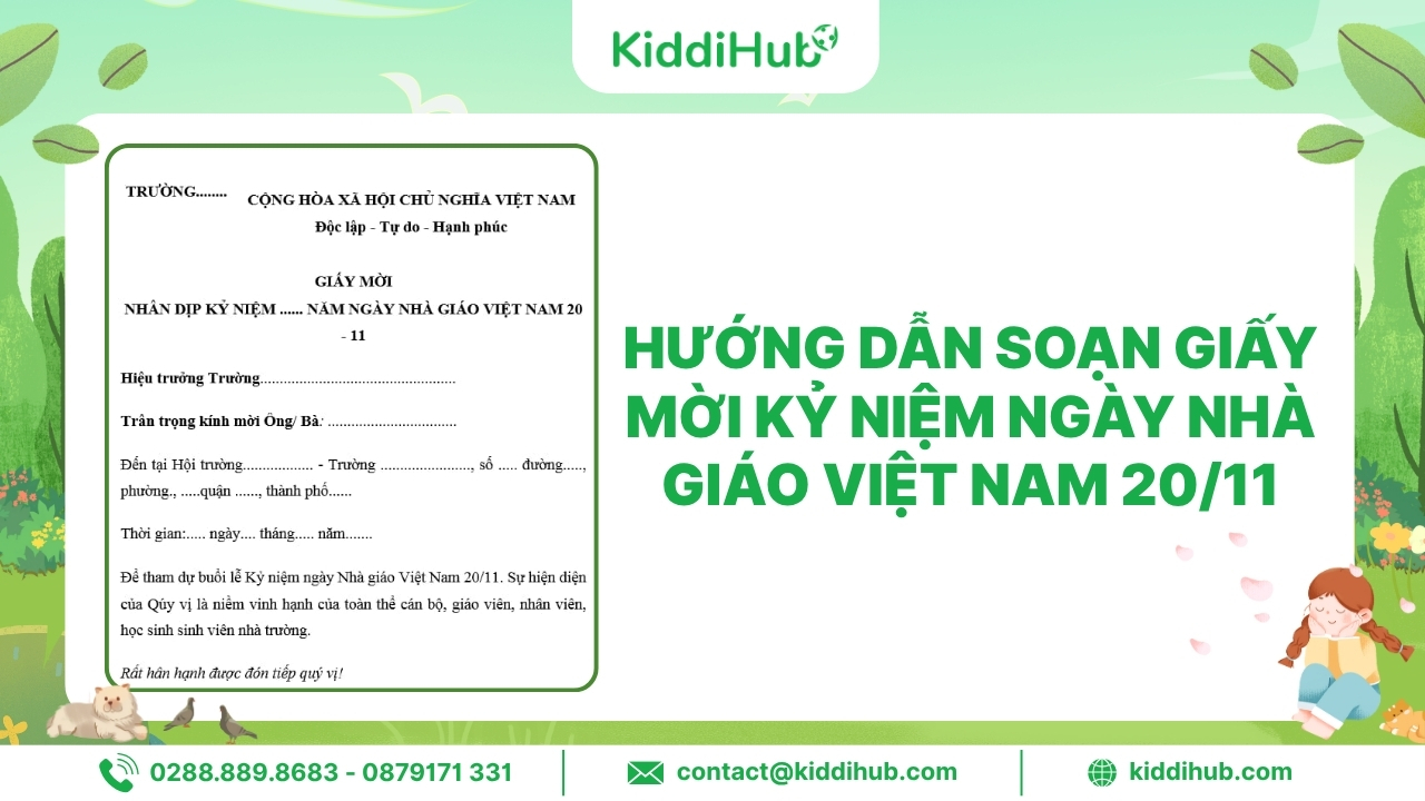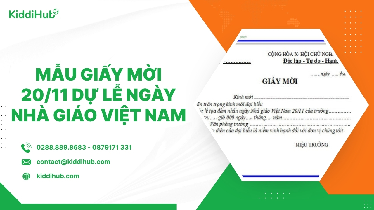 Giấy mời 20/11 là phương tiện quan trọng giúp các trường và đơn vị gửi lời tri ân chân thành đến thầy cô nhân Ngày Nhà giáo Việt Nam. Mẫu giấy mời chuẩn mực không chỉ cung cấp thông tin về thời gian, địa điểm mà còn thể hiện sự tôn kính và lòng biết ơn của học trò. Trong bài viết này, Kiddihub sẽ giới thiệu một số mẫu giấy mời 20 11, hướng dẫn soạn thảo và giải đáp thắc mắc liên quan đến tổ chức lễ, giúp bạn hoàn thành buổi lễ thuận lợi và ý nghĩa.