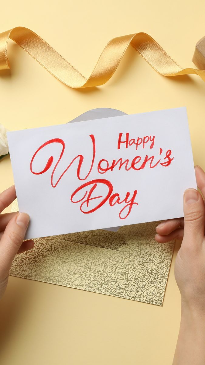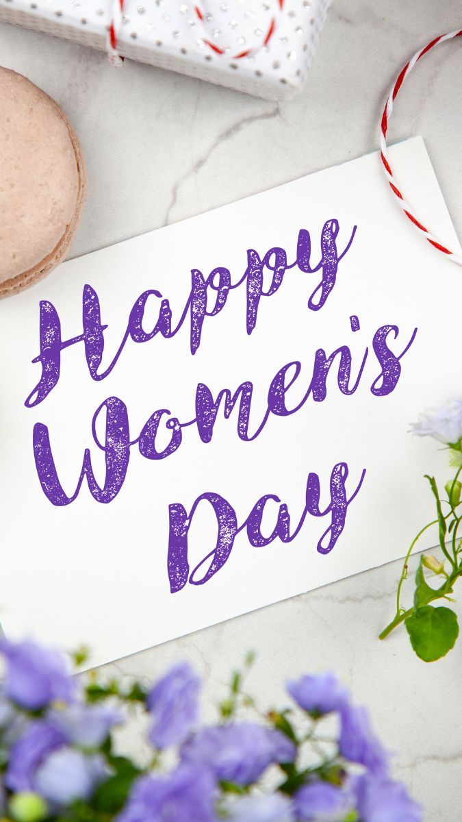 Mẫu hình nền có sẵn câu chúc tạo điểm nhấn cảm xúc mạnh mẽ. Các chữ “Happy Women’s Day”, “Chúc mừng ngày Quốc tế Phụ nữ 8/3” thường xuất hiện với font mềm mại, phù hợp làm ảnh bìa, avatar hoặc thiệp điện tử.
