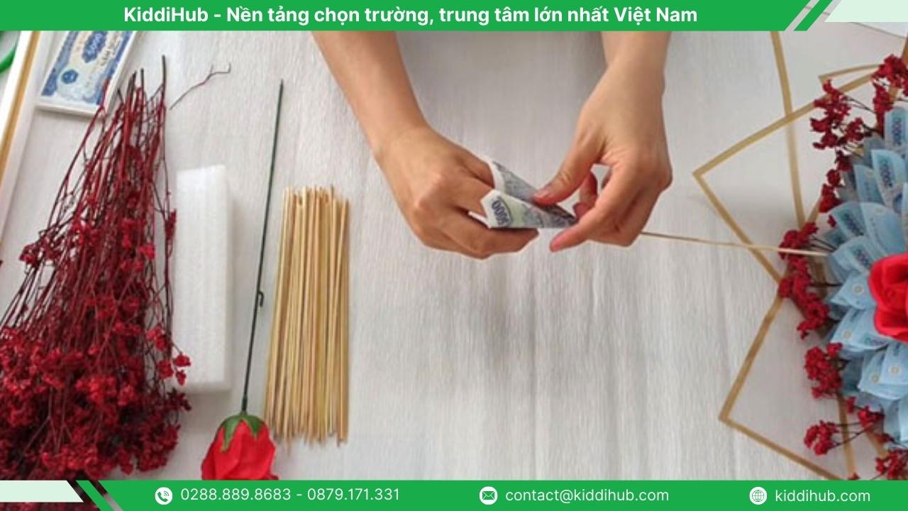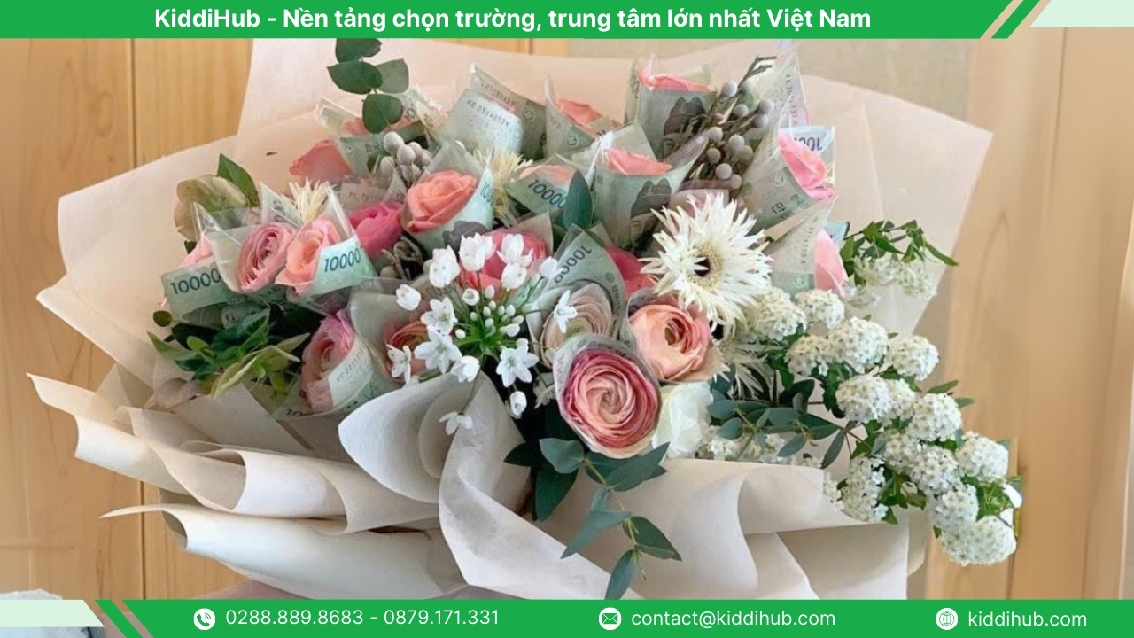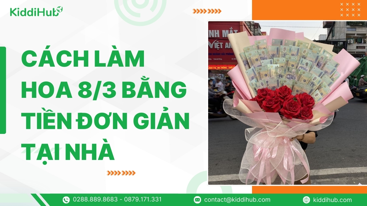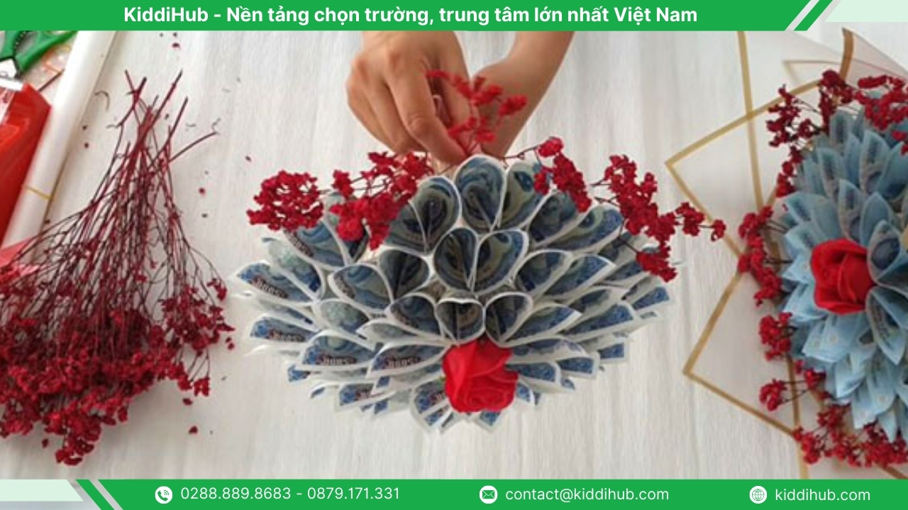 KiddiHub sẽ hướng dẫn bạn từng bước để tự tay tạo nên những bó hoa 8/3 bằng tiền thật đẹp mắt, tinh tế và ấn tượng, hoàn hảo để gửi tặng mẹ, vợ, người yêu hoặc chị em gái trong những dịp đặc biệt.
