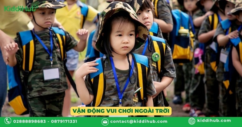Phần vận động ngoài trời trong kế hoạch giáo dục hè cho trẻ mầm non đóng vai trò quan trọng trong việc phát triển thể chất và tăng cường sự linh hoạt của trẻ. Các trò chơi vận động như chạy nhảy, nhảy dây, chơi bóng và các trò chơi tập thể như kéo co, chuyền bóng giúp trẻ rèn luyện thể lực, phát triển kỹ năng phối hợp tay mắt, cũng như nâng cao phản xạ và tinh thần làm việc nhóm. Không gian rộng rãi cùng không khí trong lành của sân chơi ngoài trời còn giúp trẻ giải phóng năng lượng một cách tích cực, đồng thời nâng cao sức đề kháng và tinh thần vui khỏe trong suốt mùa hè.