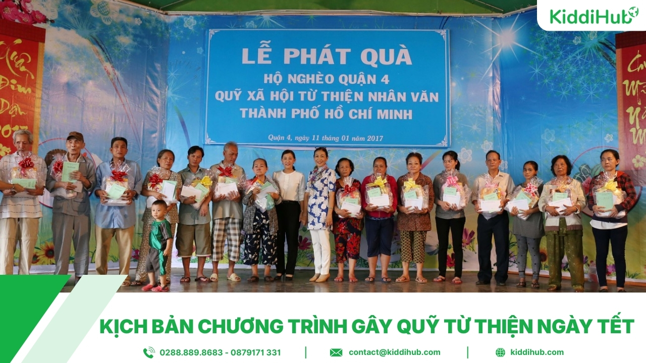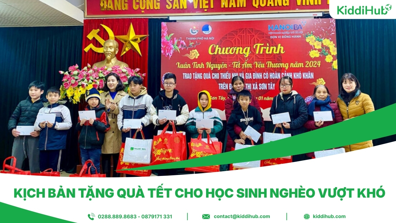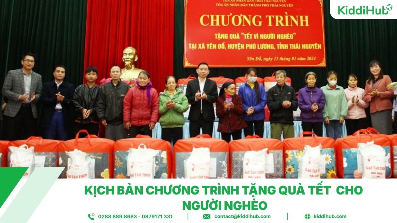 Kịch bản chương trình tặng quà Tết cho người nghèo không chỉ giúp buổi lễ diễn ra trang trọng, mạch lạc mà còn góp phần lan tỏa thông điệp yêu thương, sẻ chia đúng với tinh thần ngày Tết cổ truyền. Một kịch bản được chuẩn bị chu đáo sẽ kết nối hiệu quả giữa ban tổ chức, mạnh thường quân và người nhận quà, tạo nên một mùa xuân ấm áp và ý nghĩa hơn cho cộng đồng. Hy vọng những gợi ý trên sẽ giúp bạn dễ dàng xây dựng chương trình phù hợp và trọn vẹn cùng KiddiHub.