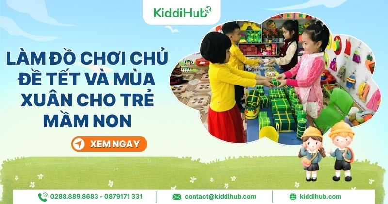 Làm đồ chơi chủ đề Tết và mùa xuân cho trẻ mầm non không chỉ là hoạt động thủ công sáng tạo, mà còn là cơ hội tuyệt vời để trẻ mầm non tìm hiểu về nét đẹp văn hóa truyền thống và không khí rộn ràng của những ngày đầu năm mới. Thông qua việc tự tay làm những món đồ chơi như bánh chưng, hoa mai, bao lì xì hay lồng đèn, trẻ được rèn luyện sự khéo léo, phát triển óc thẩm mỹ và thêm yêu quý ngày Tết cổ truyền. Hãy cùng KiddiHub khám phá những cách làm đồ chơi đơn giản, an toàn và đầy màu sắc để mang mùa xuân vào từng góc lớp học!