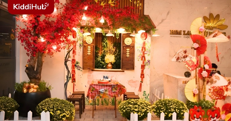 Khi trang trí quán cafe đón Tết, bạn nên tạo không gian vừa ấm cúng vừa mang sắc xuân rực rỡ. Sử dụng tông màu tươi sáng như đỏ, vàng, xanh kết hợp với hoa tươi, hoa giả và câu đối Tết sẽ giúp quán nổi bật. Thêm những vật dụng nhỏ như lồng đèn, cây cảnh mini hay đồ trang trí Tết handmade sẽ làm không gian thêm gần gũi và bắt mắt. Bạn cũng có thể làm đồ trang trí Tết như dây treo, vòng hoa hoặc bao lì xì mini để decor bàn và quầy thu ngân, đồng thời trang trí khu vực ngoài trời với cây cối, hoa lá để thu hút khách và tạo cảm giác tươi mới.
