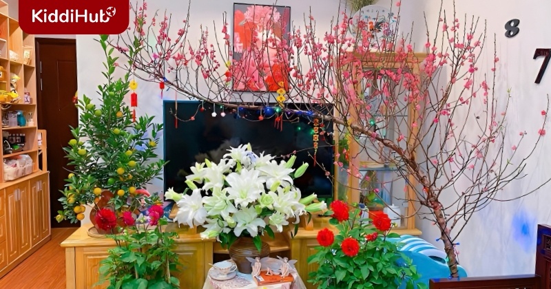Sử dụng hoa tươi kết hợp đèn LED hoặc đèn flash giúp không gian rực rỡ, sinh động. Hoa mai, đào, cúc vạn thọ hay quất tượng trưng cho may mắn, thịnh vượng. Bạn có thể kết hợp với các món đồ trang trí Tết handmade, tạo ra góc nhà vừa hiện đại vừa gần gũi.