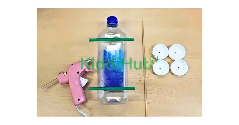 Bước 4: Lắp bánh xe vào phần thân chai đã chuẩn bị ở bước đầu.