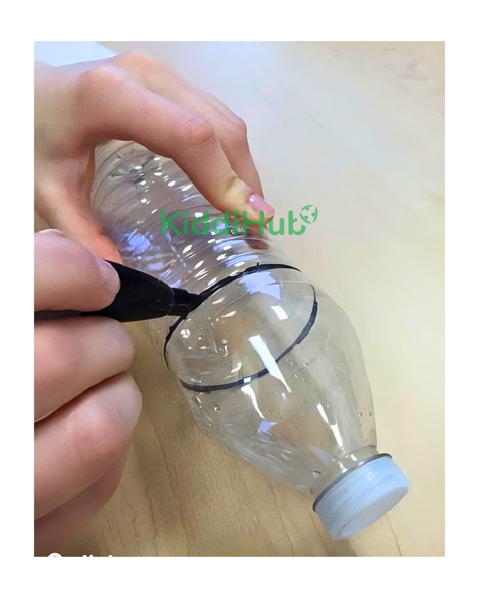 Bước 14: Xác định và đánh dấu vị trí sẽ cắt trên thân chai, tham khảo cách làm qua hình bên dưới để thao tác dễ hơn.