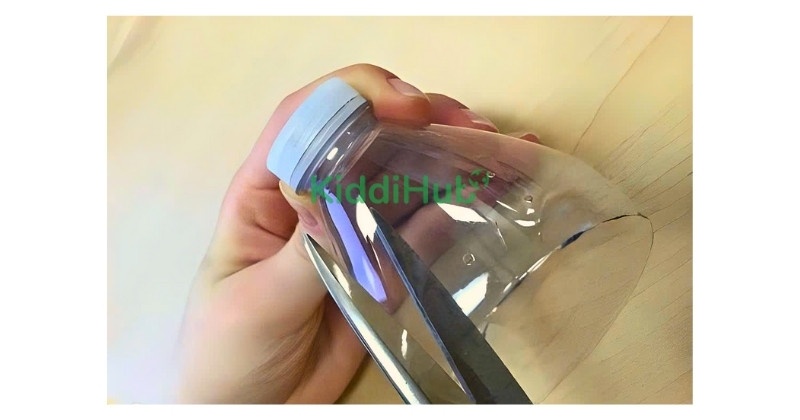 Bước 13: Tiếp theo, chuẩn bị kéo, dao cắt và một chai nhựa tròn.