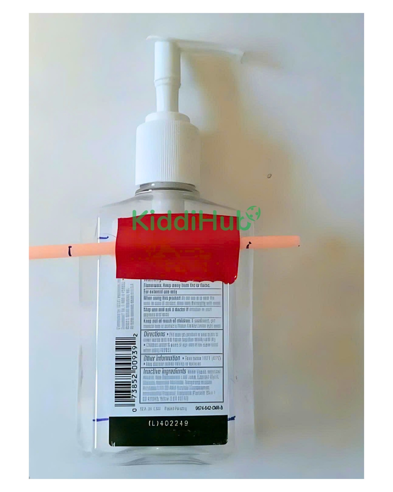 Bước 1: Cắt một đoạn ống hút và gắn vào phần đáy chai nhựa, đảm bảo mỗi đầu ống thò ra khoảng 2,5 cm.