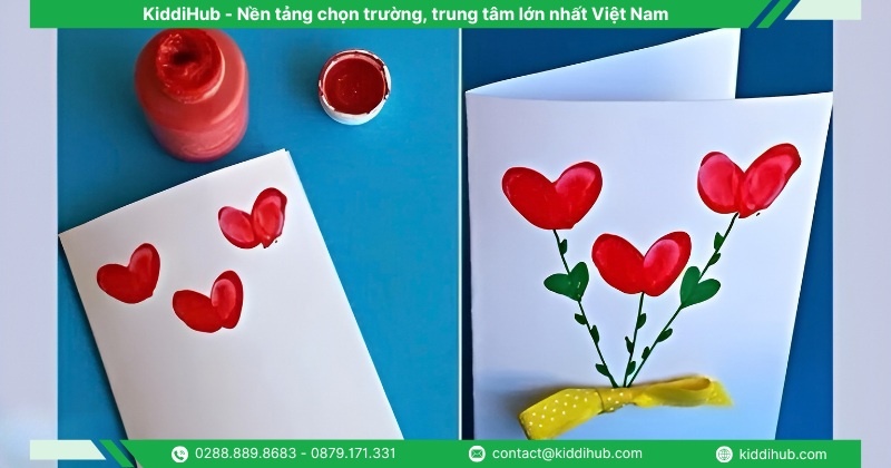 Các bước làm thiệp 8/3 cho trẻ mầm non bằng vân tay đơn giản: