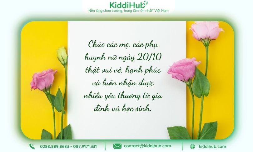 Trong dịp đặc biệt này, lời chúc 20/10 từ giáo viên gửi đến phụ huynh không chỉ mang ý nghĩa tri ân mà còn gắn kết yêu thương. Những dòng chúc ngắn gọn, chân thành giúp lan tỏa niềm vui và tạo nên bầu không khí ấm áp trong nhóm lớp. Dưới đây là một số gợi ý chi tiết từ Kiddihub: