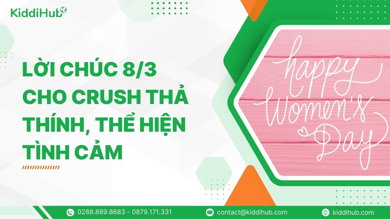 Hy vọng bài viết này đã giúp bạn tìm được những lời chúc 8/3 cho crush phù hợp, vừa thể hiện được tình cảm chân thành, vừa phù hợp với tính cách và mức độ thân thiết giữa hai người. Chỉ một câu chúc đúng cảm xúc cũng có thể tạo ấn tượng tốt và mở ra cơ hội tiến gần hơn đến trái tim của người ấy. Nếu bạn muốn khám phá thêm nhiều mẫu lời chúc theo phong cách ngầu, dễ thương, trưởng thành hoặc “thả thính mạnh”, hãy liên hệ với KiddiHub– nơi có thể sáng tạo và gửi đến bạn những câu chúc độc quyền, hoàn toàn phù hợp với phong cách bạn mong muốn.