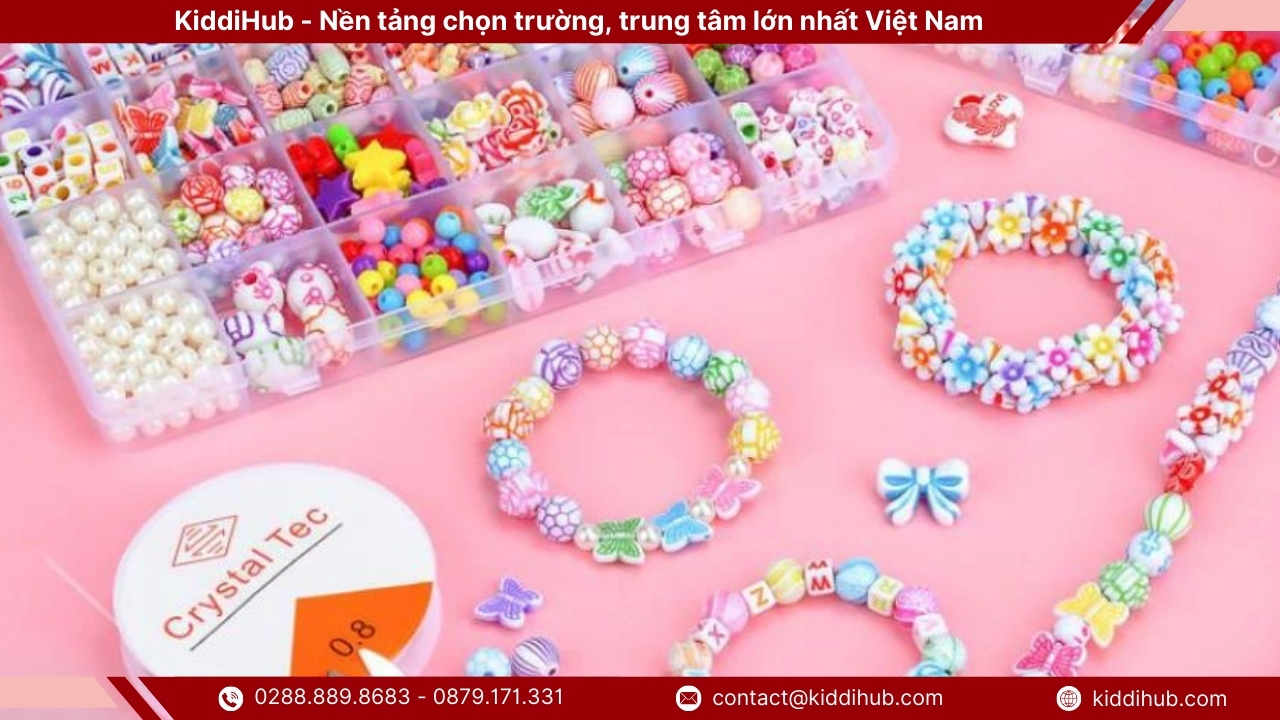 Đồ chơi thủ công giúp bé rèn luyện sự khéo léo, kiên nhẫn và gu thẩm mỹ. Với các bộ làm vòng tay, vòng cổ, bé có thể tự tay tạo ra những món trang sức riêng hoặc làm quà tặng cho bạn bè và người thân.