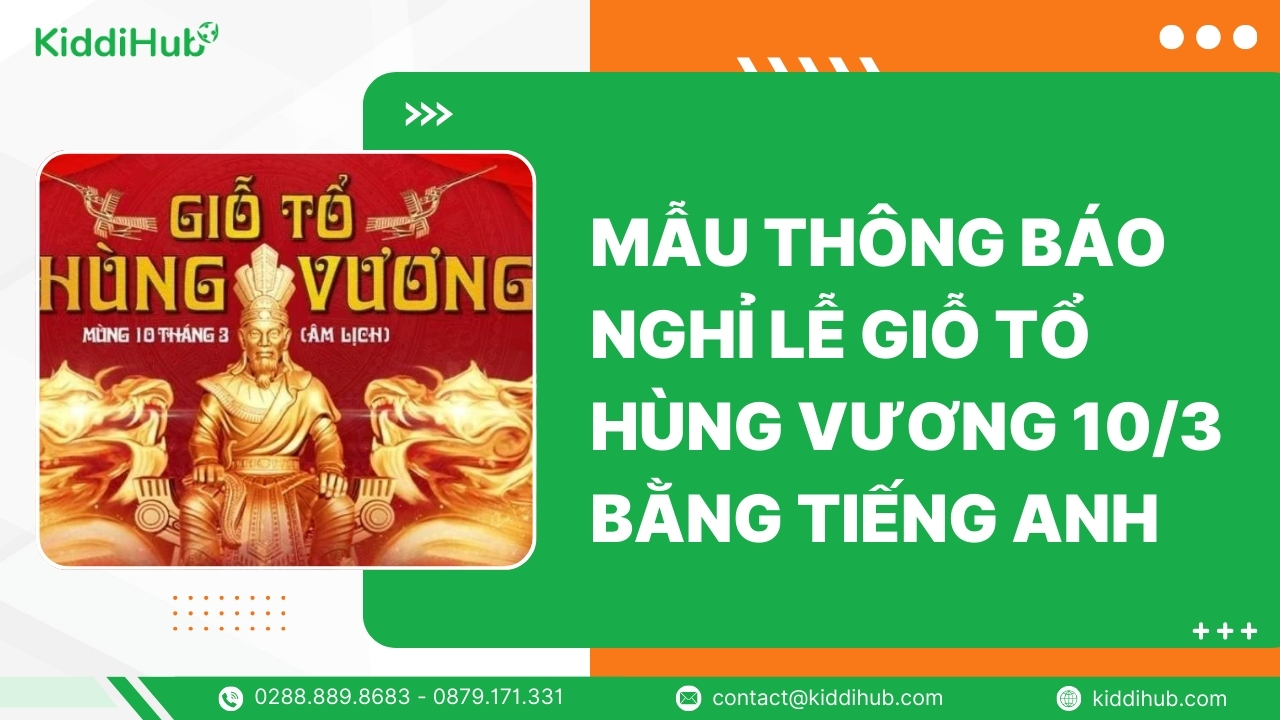 Ngày Giỗ Tổ Hùng Vương (10/3 Âm lịch) là dịp lễ truyền thống quan trọng của Việt Nam, tưởng nhớ các vị vua Hùng. Để thông tin về lịch nghỉ lễ được truyền đạt rõ ràng và chuyên nghiệp tới nhân viên và đối tác quốc tế, việc sử dụng mẫu thông báo nghỉ lễ Giỗ Tổ Hùng Vương 10/3 bằng tiếng Anh là cần thiết.