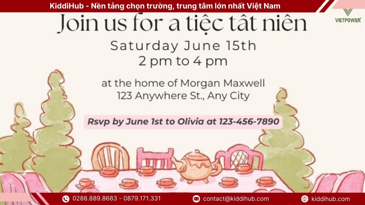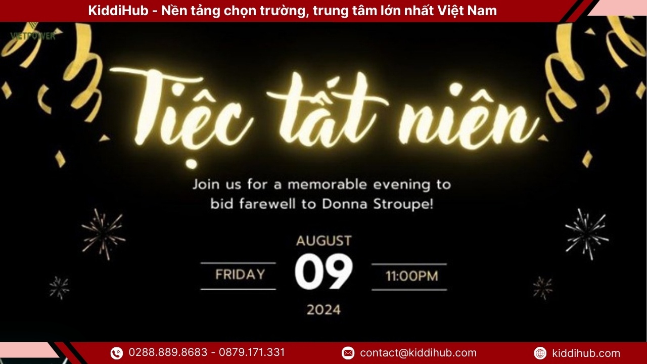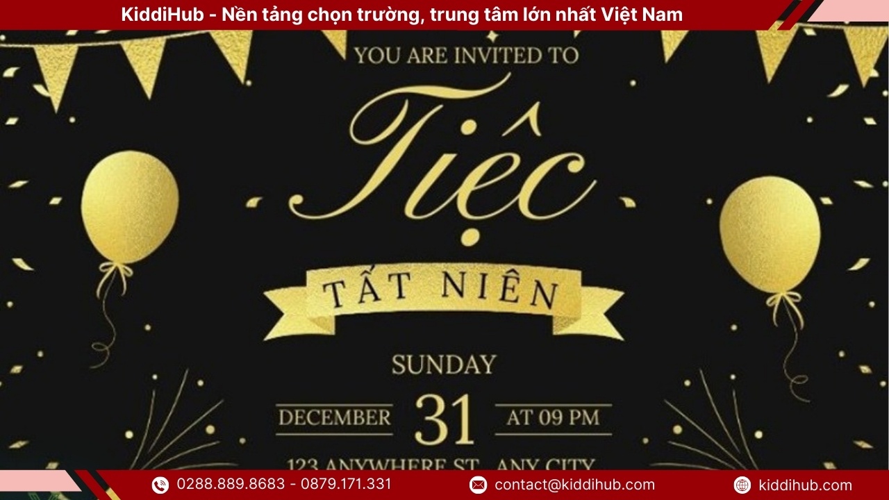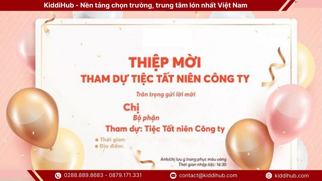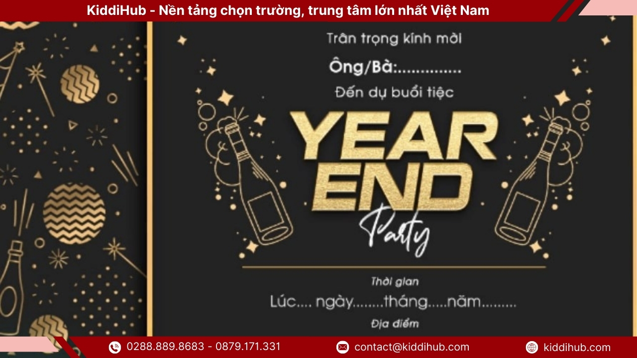 Thư mời tất niên không chỉ là một thông báo đơn thuần mà còn là cầu nối thể hiện sự trân trọng và gắn kết giữa người tổ chức và khách mời trong dịp cuối năm. Việc đầu tư vào nội dung, cách trình bày và thời điểm gửi thư mời tất niên sẽ giúp sự kiện trở nên chuyên nghiệp, ý nghĩa và đáng nhớ hơn. Một thư mời tất niên được chuẩn bị chỉn chu chính là bước khởi đầu hoàn hảo cho một buổi tiệc tổng kết năm trọn vẹn và đầy cảm xúc. Đừng quên tiếp tục theo dõi KiddiHub để cập nhật thêm nhiều tin tức thú vị và xu hướng mới nhất về chủ đề này nhé !