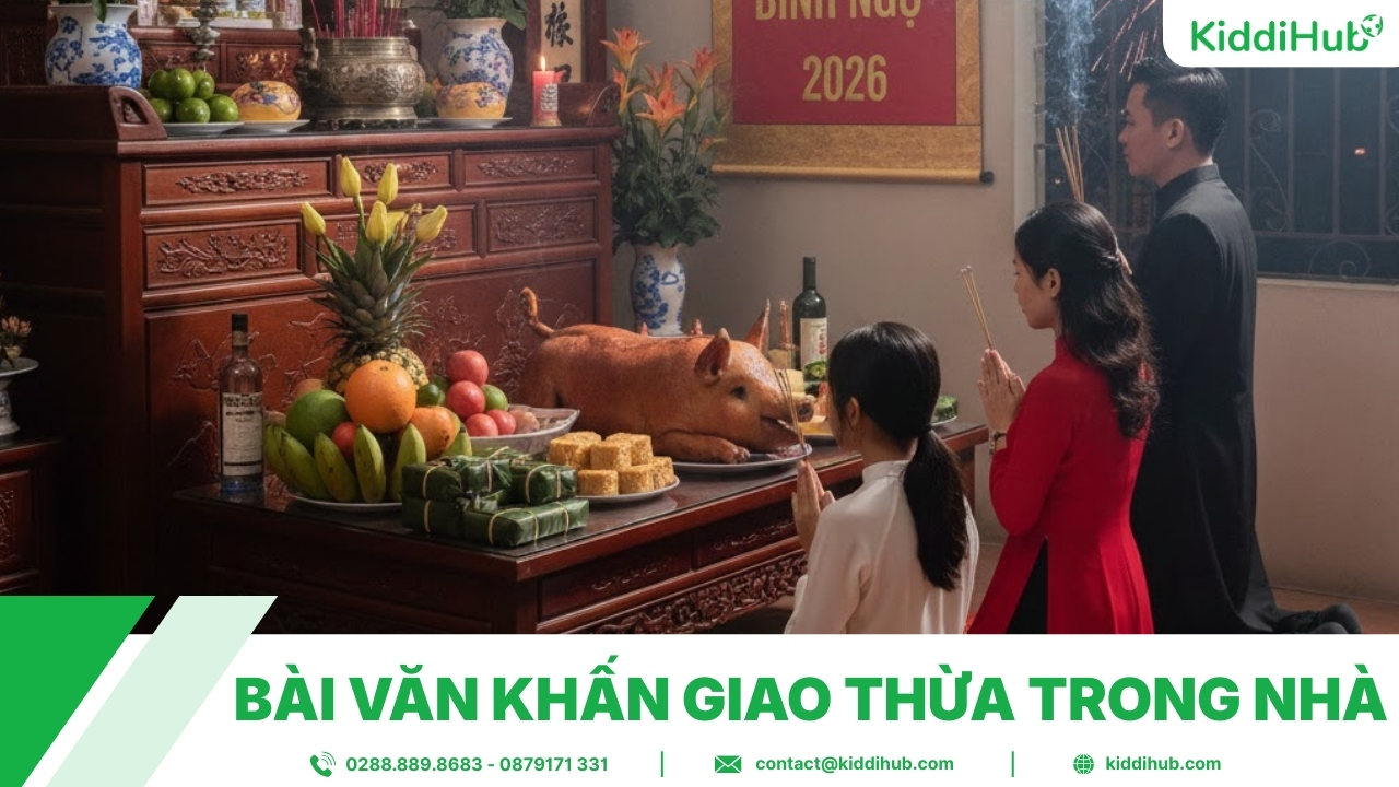 Giao thừa là khoảnh khắc đánh dấu sự khép lại của năm cũ và mở ra năm mới, mang giá trị tâm linh sâu sắc trong văn hóa Việt Nam. Chuẩn bị bài văn khấn giao thừa đầy đủ, trang nghiêm giúp gia đình bày tỏ sự tri ân với tổ tiên, các đấng thần linh, đồng thời gửi gắm ước nguyện về một năm mới an lành, hanh thông. Cùng KiddiHub khám phá trọn bộ văn khấn giao thừa trong nhà, ngoài trời, Thần Tài, Thổ Công đầy đủ và chuẩn xác cho năm 2026.