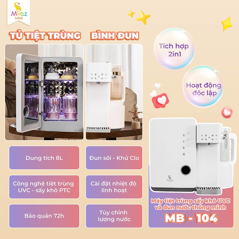 Tìm hiểu về những tính năng đi kèm của máy. Ví dụ như có sản phẩm có thể sấy khô, bảo quản bình sữa, chức năng sấy ấm quần áo như MB-082 của Moaz BéBé, hoặc là hâm sữa, đun nước, …. để lựa chọn.