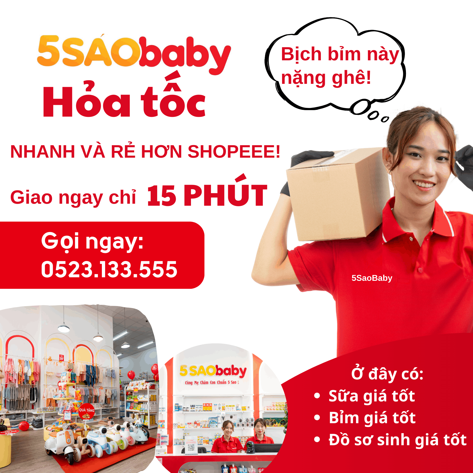 Không chỉ bán sản phẩm, 5saobaby còn mang đến cho khách hàng sự chăm sóc chu đáo. Nhân viên luôn sẵn sàng tư vấn và hỗ trợ, từ cách chọn sản phẩm đến hướng dẫn sử dụng sao cho hiệu quả nhất.
