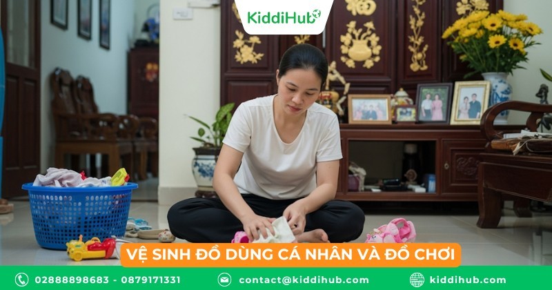 Dụng cụ ăn uống và đồ chơi là những vật trẻ thường xuyên tiếp xúc, cần được vệ sinh sạch sẽ để ngăn ngừa vi khuẩn.