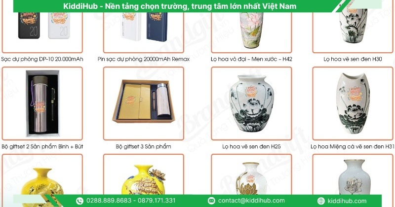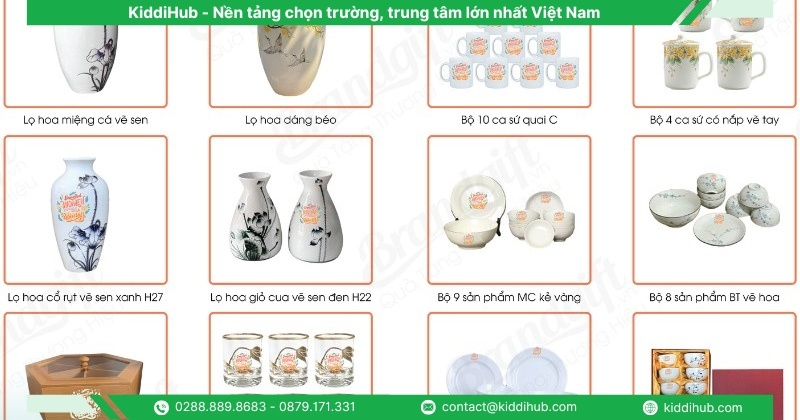 Lọ hoa gốm sứ có nhiều mẫu mã đa dạng: bình hoa sứ trắng vẽ tay, bình men màu, bình kẻ chỉ vàng, hay bình họa tiết thổ cẩm, phù hợp với nhiều sở thích. Giá cả cũng rất linh hoạt, từ trung bình đến cao cấp, giúp các doanh nghiệp dễ dàng lựa chọn khi chuẩn bị quà tặng 8/3 cho công nhân.