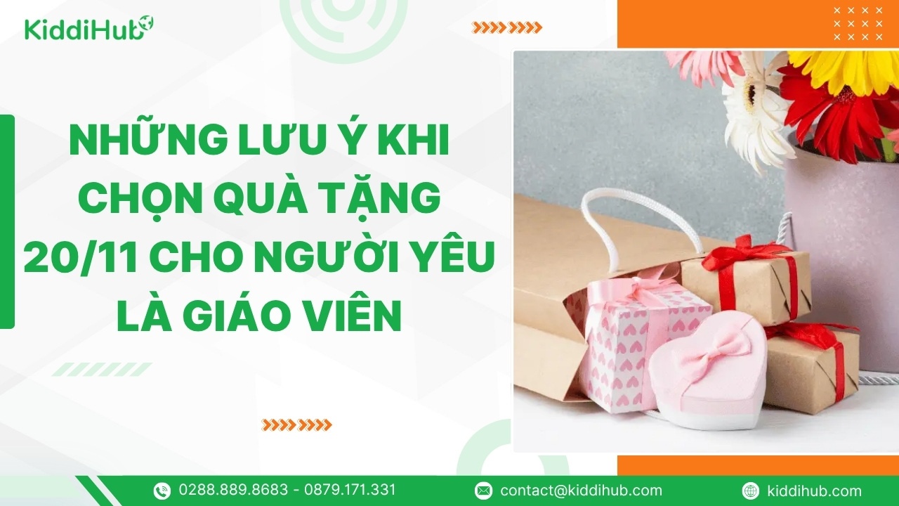Việc chọn một món quà tặng 20/11 cho người yêu là giáo viên không chỉ giúp người yêu cảm nhận được tình cảm và sự quan tâm của bạn, mà còn mang lại những phút giây thư giãn, hạnh phúc sau những giờ giảng dạy căng thẳng. Kiddihub gợi ý bạn nên ưu tiên những món quà tinh tế, thiết thực và phù hợp với sở thích của cô ấy để ngày 20/11 trở nên thật ý nghĩa, đồng thời ghi dấu kỷ niệm ngọt ngào trong mối quan hệ của hai bạn.