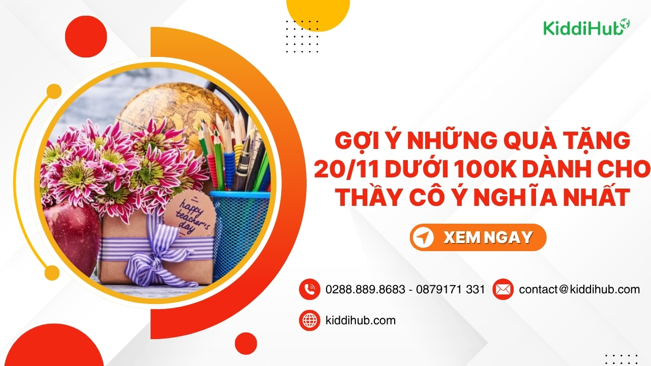 Ngày Nhà giáo Việt Nam 20/11 là dịp đặc biệt để học sinh, phụ huynh bày tỏ tấm lòng tri ân sâu sắc đến những người đã tận tụy dạy dỗ, dìu dắt bao thế hệ học trò. Không cần những món quà xa hoa, đôi khi chỉ với một món quà nhỏ dưới 100k nhưng chứa đựng tình cảm chân thành cũng đủ khiến thầy cô cảm thấy ấm lòng. Dưới đây là gợi ý những quà tặng 20/11 dưới 100k dành cho thầy cô ý nghĩa nhất của KiddiHub mà bạn có thể tham khảo.