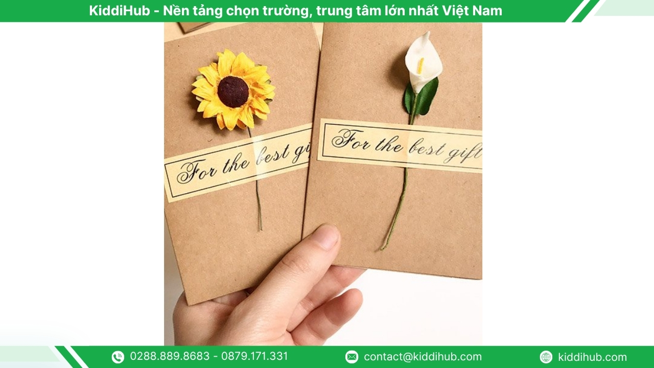 Một tấm thiệp tự tay làm luôn chứa đựng nhiều cảm xúc hơn những món quà mua sẵn. Bạn có thể tự trang trí thiệp với màu sắc, hình vẽ và viết vào đó những lời chúc chân thành gửi tới thầy cô. Đây là món quà tinh thần ý nghĩa, thể hiện sự quan tâm và lòng biết ơn sâu sắc.