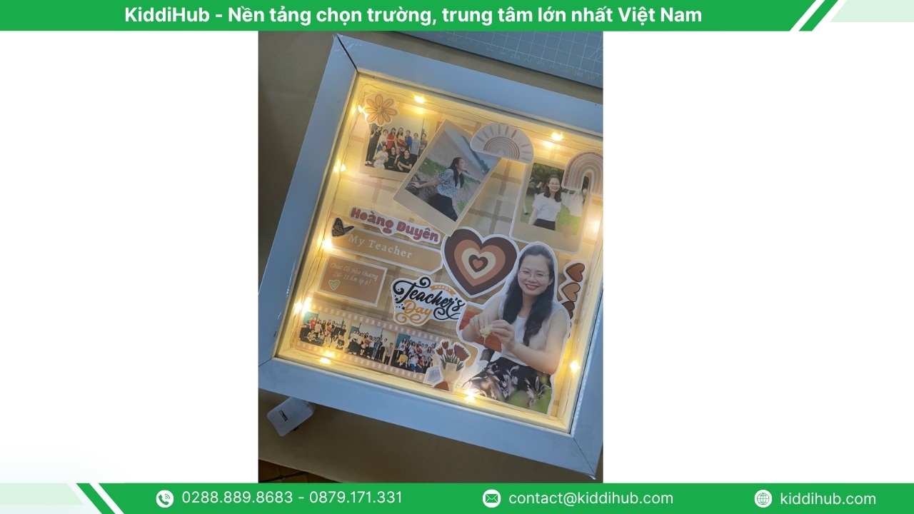 Tự tay làm một khung ảnh handmade từ những bức hình kỷ niệm là món quà độc đáo và cảm động. Mỗi tấm ảnh, mỗi chi tiết trang trí đều gói ghém những ký ức tươi đẹp về thời học trò và tình thầy trò thiêng liêng.