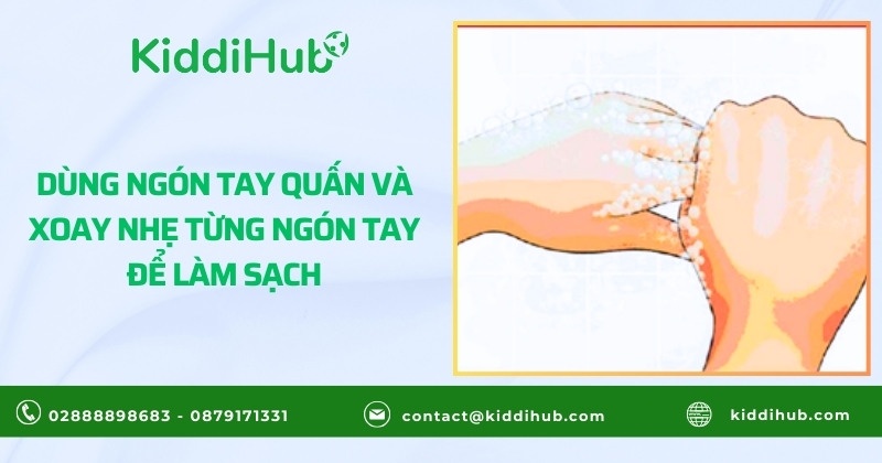 Bước 2: Dùng các ngón tay của một tay quấn quanh từng ngón tay của tay còn lại, xoay nhẹ nhàng để làm sạch.