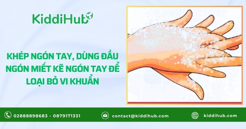 Bước 4: Khép các ngón tay, dùng đầu ngón tay này miết vào kẽ giữa các ngón tay kia để loại bỏ vi khuẩn.
