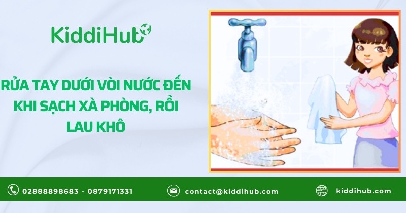 Quy trình 6 bước rửa tay cho trẻ mầm non giúp bé loại bỏ vi khuẩn, bảo vệ sức khỏe và phòng tránh bệnh tật. Việc hướng dẫn trẻ rửa tay đúng cách không chỉ tạo thói quen vệ sinh tốt mà còn giảm nguy cơ lây nhiễm trong môi trường học đường. Hãy cùng Kiddhub khám phá chi tiết từng bước thực hiện thông qua bài viết dưới đây nhé!