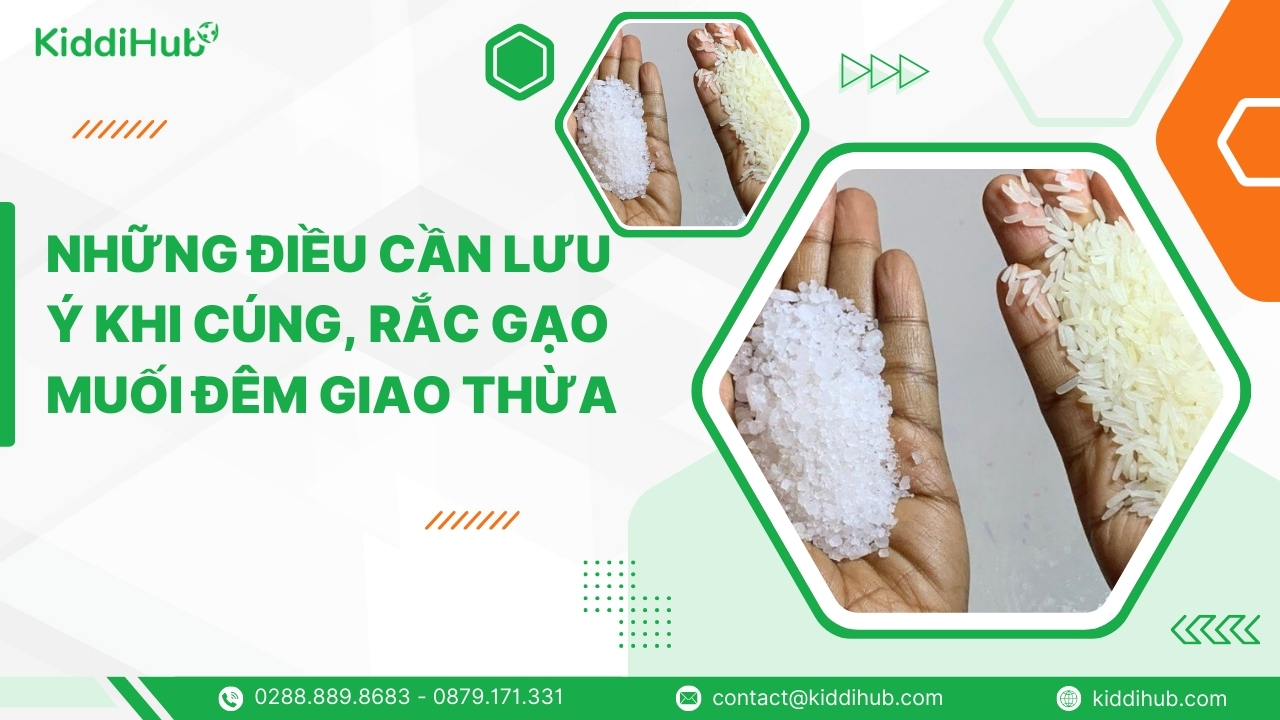 Rắc gạo muối đêm giao thừa là phong tục truyền thống của người Việt, mang ý nghĩa xua đi vận rủi, cầu may mắn, bình an và tài lộc cho gia đình trong năm mới. Khi thực hiện, nên rải gạo muối ở ngoài nhà, vừa rải vừa niệm Phật để thể hiện lòng thành kính với tổ tiên và các linh hồn lang thang. Trong bài viết này KiddiHub sẽ hướng dẫn cách rắc gạo muối đêm giao thừa chuẩn phong tục, giúp gia chủ đón năm mới thuận lợi và thịnh vượng.
