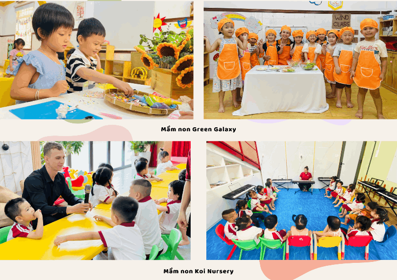 → Tổng quan thì chương trình học của mầm non Green Galaxy và Koi Nursery đều kết hợp hài hòa giữa chương trình giáo dục quốc gia và phương pháp giáo dục sớm tiến tiến, mang đến cho trẻ một chương trình học phong phú và đa dạng.