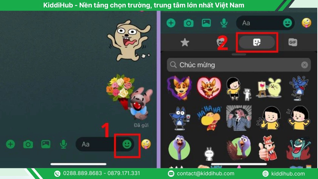 Bước 2: Nhấn vào biểu tượng sticker trong khung tin nhắn.