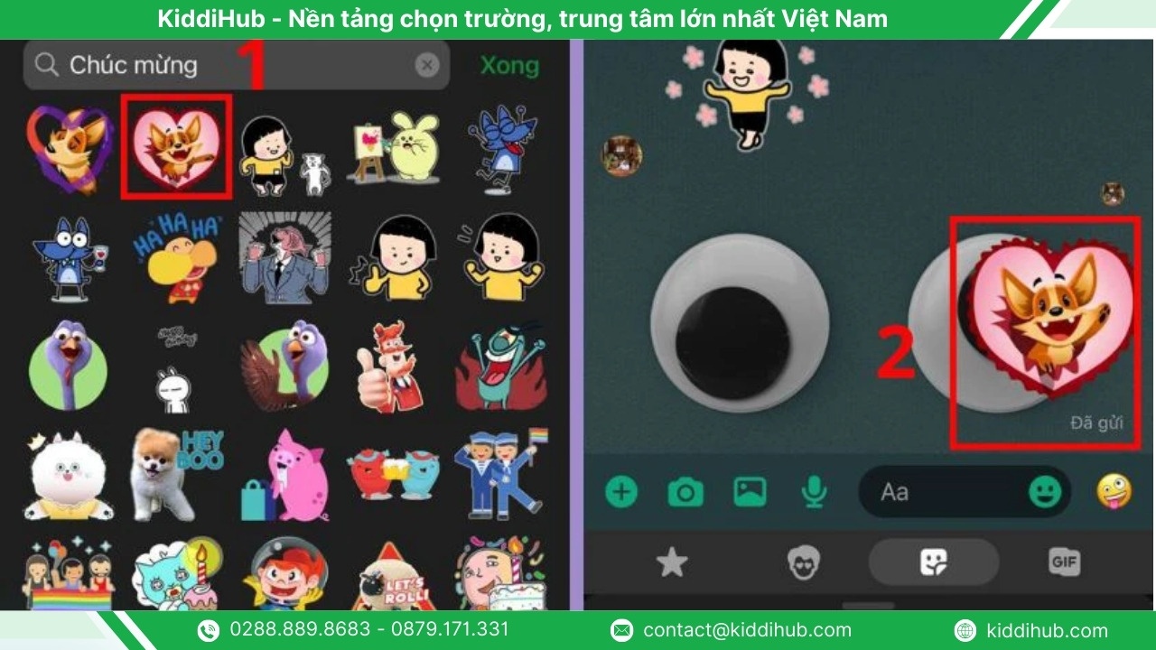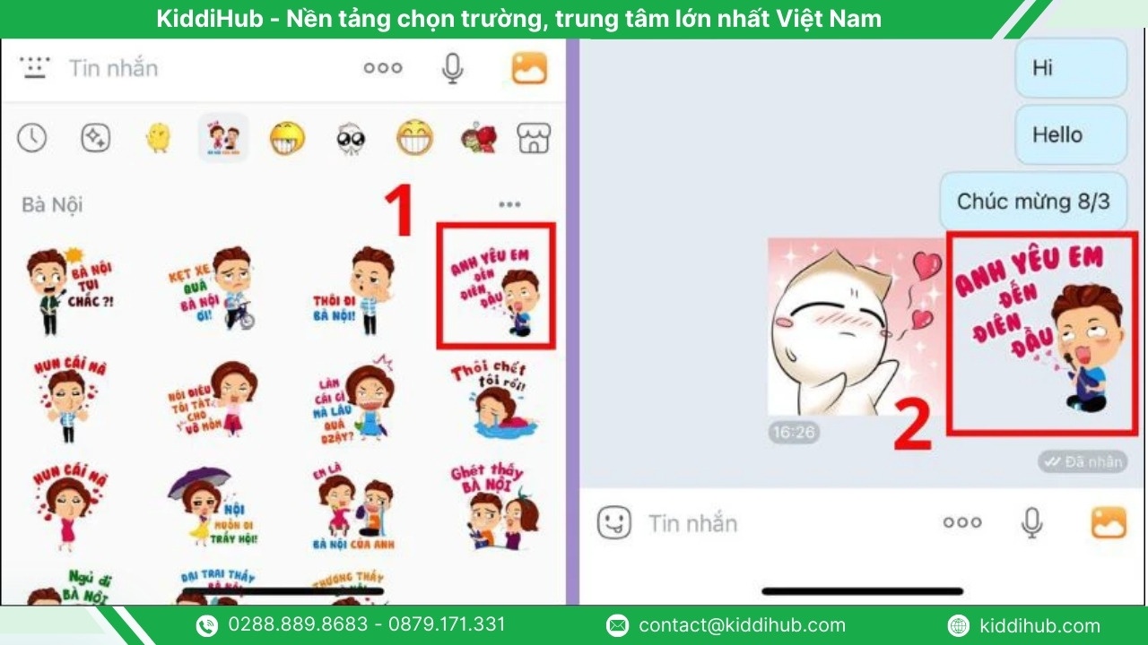 Bước 3: Tìm và chọn mẫu sticker 8/3 mà bạn thích, sau đó bấm gửi để hoàn tất.