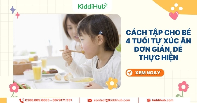 Hy vọng qua bài viết này, ba mẹ đã nắm được những thông tin hữu ích về cách tập cho bé 4 tuổi tự xúc ăn. Việc dạy bé tự ăn không chỉ giúp trẻ phát triển kỹ năng vận động và tự lập mà còn khuyến khích tính độc lập ngay từ khi còn nhỏ. Ở độ tuổi 4, trẻ có khả năng tiếp thu nhanh và rất thích thú với các hoạt động học hỏi, vì vậy, ba mẹ hãy kiên nhẫn và tạo điều kiện cho trẻ thực hành mỗi ngày. Việc áp dụng các phương pháp dạy trẻ tự xúc ăn một cách khoa học sẽ giúp bé rèn luyện kỹ năng này hiệu quả. KIDDIHUB luôn đồng hành cùng phụ huynh trong hành trình giáo dục sớm, mang đến những giải pháp học tập sáng tạo và hiệu quả, giúp bé yêu phát triển toàn diện.