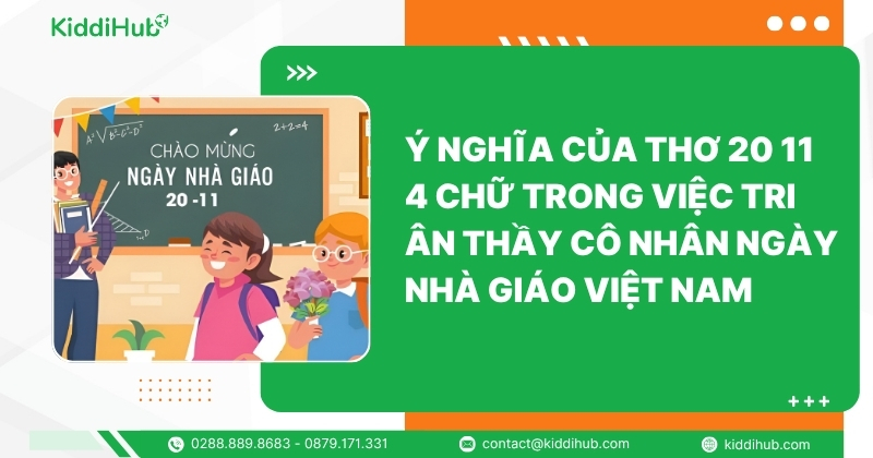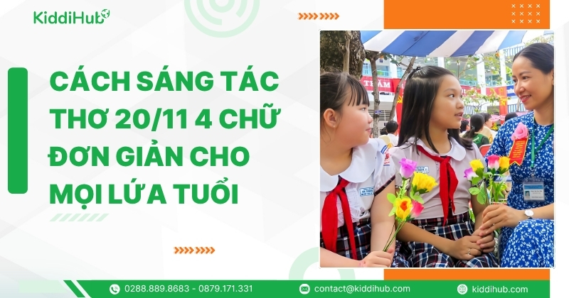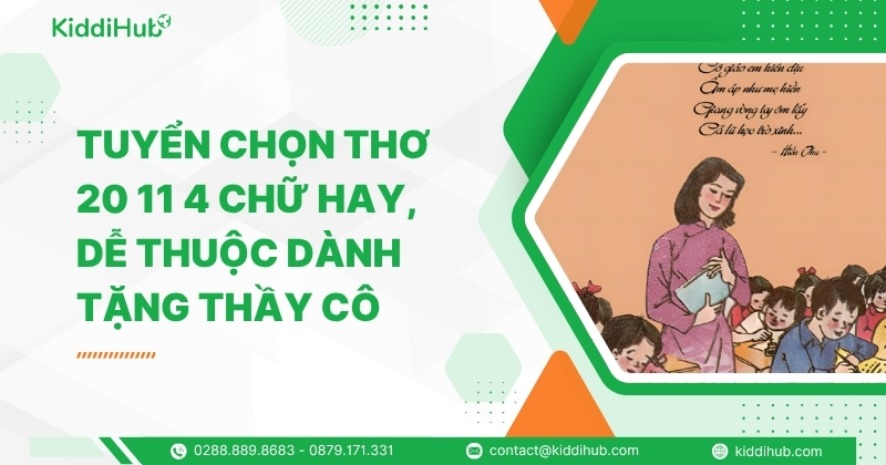 Ngày Nhà giáo Việt Nam là dịp quan trọng để học sinh bày tỏ lòng biết ơn sâu sắc đến những người thầy, người cô tận tụy. Một trong những cách thể hiện tình cảm đơn giản mà ý nghĩa nhất chính là thông qua các bài thơ 20/11 4 chữ. Với kết cấu ngắn gọn, vần điệu dễ đọc, dễ nhớ, thơ bốn chữ rất phù hợp cho các bé mầm non, học sinh tiểu học, hoặc dùng để viết thiệp, trang trí lớp học. Bài viết dưới đây KiddiHub sẽ giúp bạn hiểu rõ hơn về ý nghĩa, ứng dụng và gợi ý nhiều bài thơ 4 chữ hay dành cho dịp 20/11.