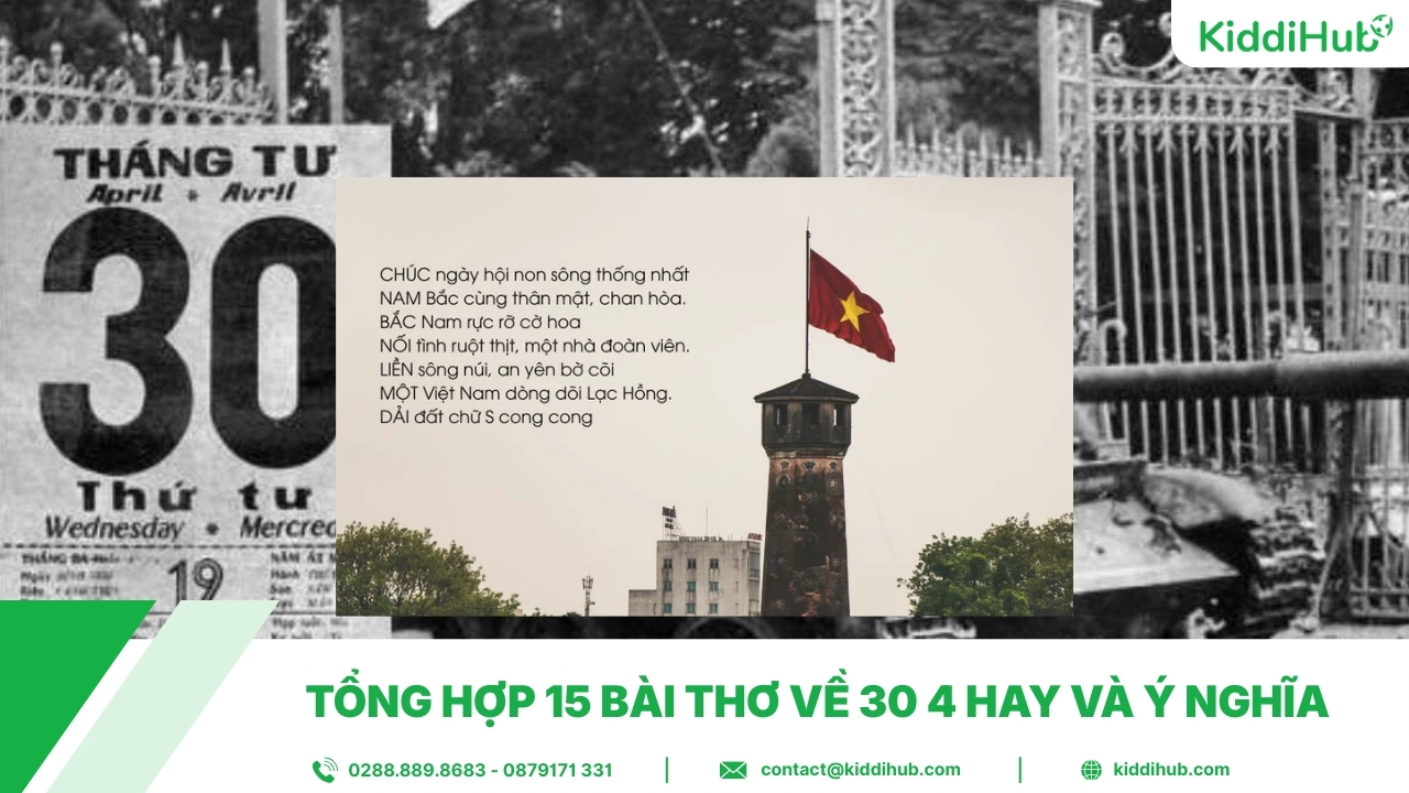 Những vần thơ về 30 4 luôn mang theo âm hưởng hào hùng của lịch sử, gợi nhắc khoảnh khắc non sông liền một dải và niềm tự hào dân tộc lan tỏa trong từng câu chữ. Qua ngôn từ mộc mạc mà sâu lắng, thơ giúp người đọc cảm nhận rõ hơn giá trị của hòa bình và sự hy sinh cao cả của các thế hệ đi trước. Trong bài viết này Kiddihub sẽ cùng bạn điểm qua những bài thơ ý nghĩa, giàu cảm xúc về ngày 30 4 để thêm yêu và trân trọng lịch sử dân tộc.
