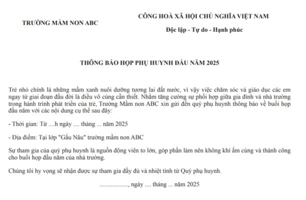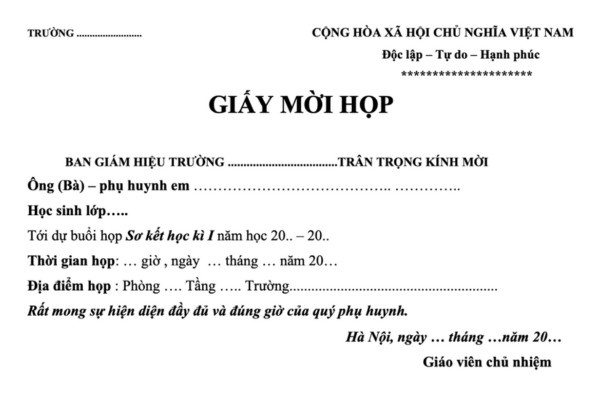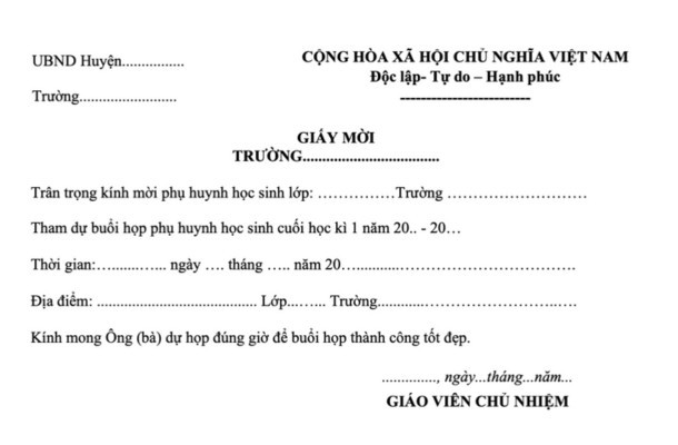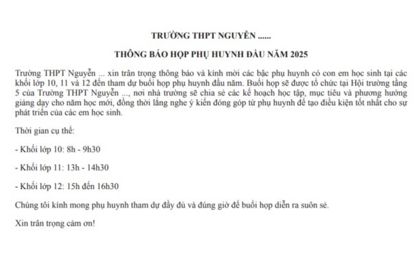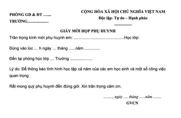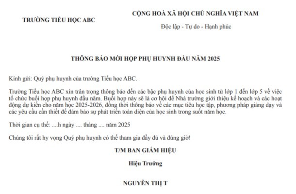Dưới đây là mẫu thông báo mời họp phụ huynh cuối năm, hỗ trợ nhà trường trong công tác tổ chức.