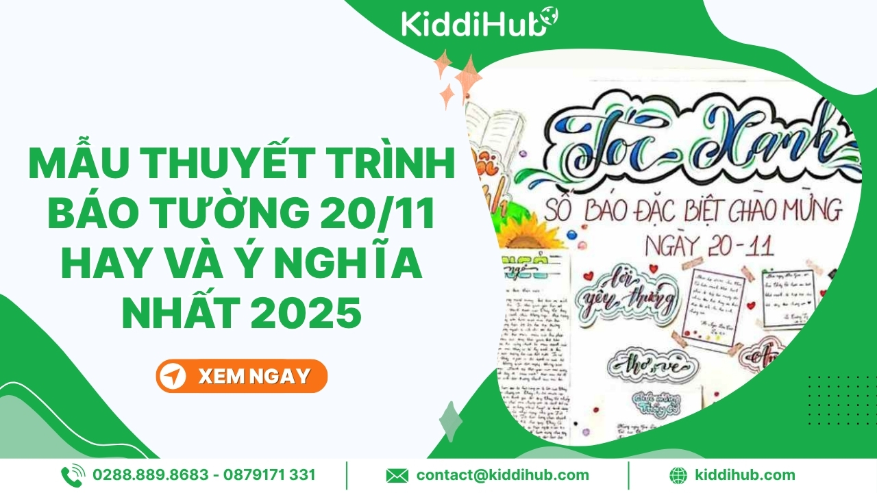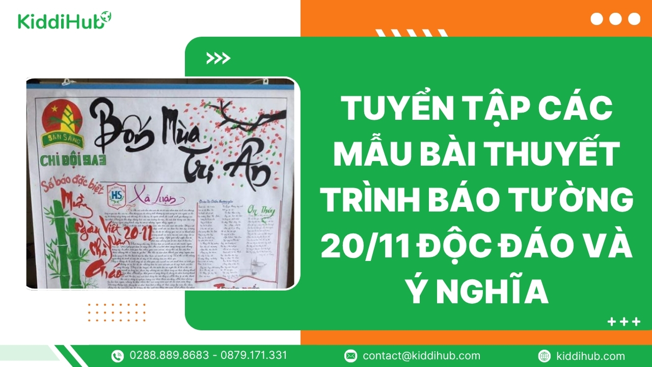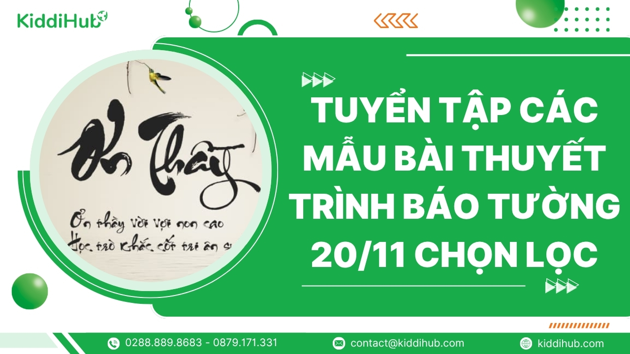 Ngày Nhà giáo Việt Nam đang đến gần, đây chính là lúc lớp bạn cùng nhau chuẩn bị một bài thuyết trình báo tường 20/11 thật ấn tượng để gửi lời tri ân sâu sắc đến thầy cô. Làm sao để bài thuyết trình vừa ý nghĩa, vừa chạm đến trái tim người nghe? Cùng khám phá KiddiHub những gợi ý và mẫu bài hay nhất ngay sau đây!
