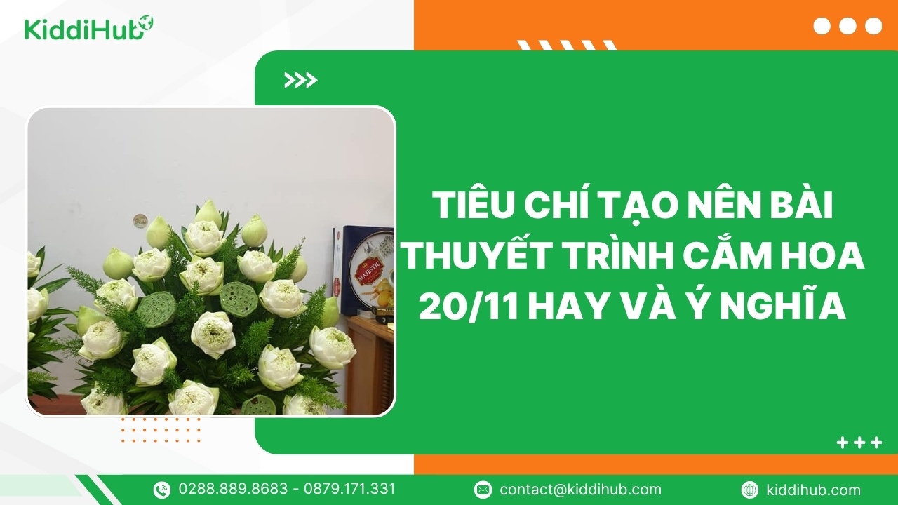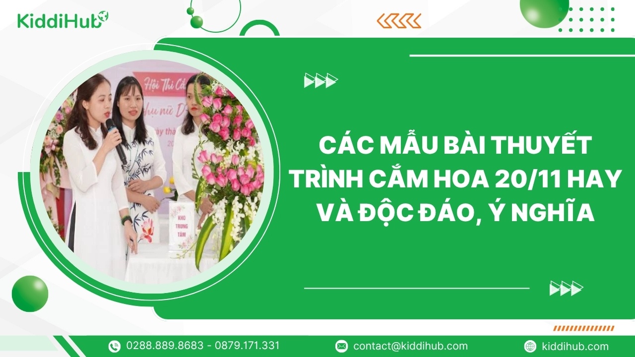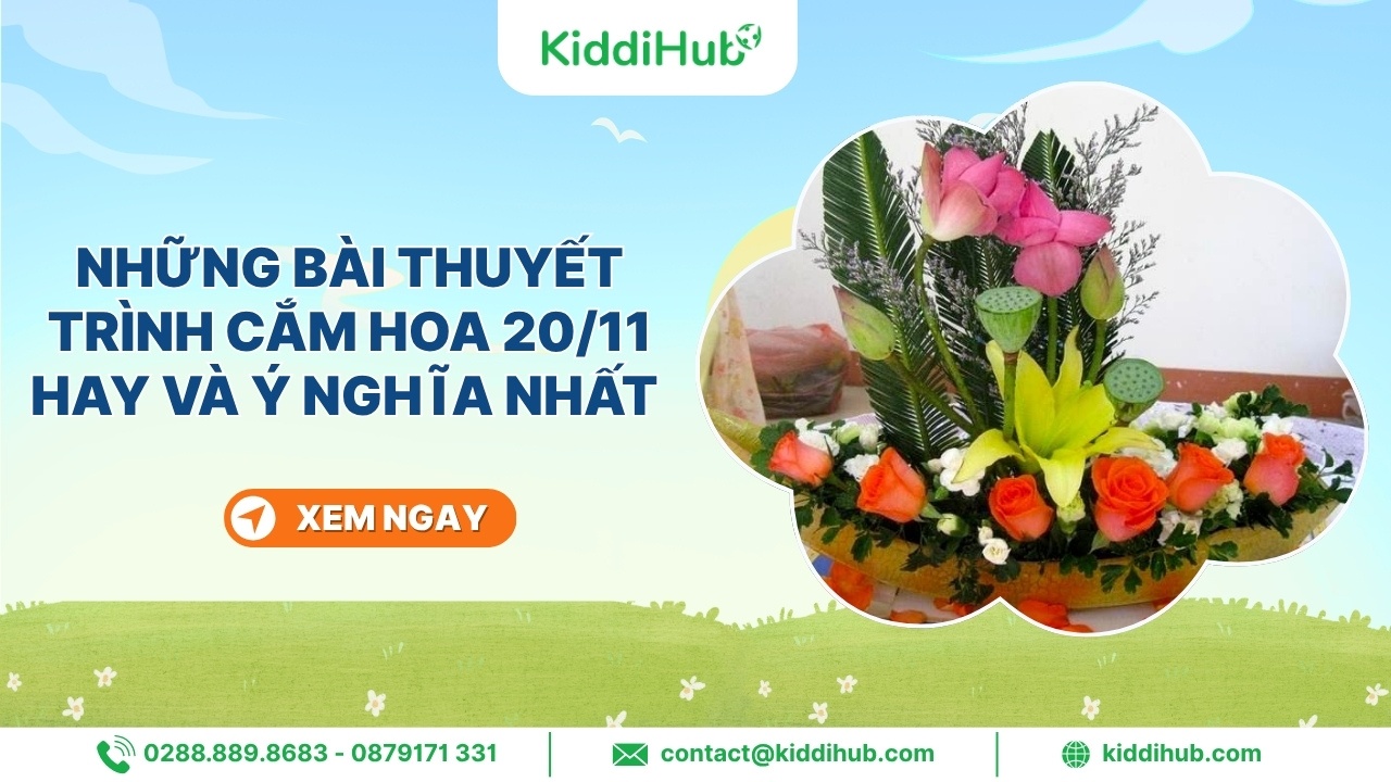 Ngày Nhà giáo Việt Nam 20/11 là dịp để học sinh thể hiện lòng biết ơn sâu sắc đến thầy cô, những người đã tận tâm dìu dắt và truyền cảm hứng trong hành trình học tập. Một trong những hoạt động ý nghĩa được nhiều trường lựa chọn là thuyết trình cắm hoa 20/11, nơi các em bày tỏ tình cảm qua những đóa hoa tươi thắm và lời chia sẻ chân thành. Cùng KiddiHub khám phá những bài thuyết trình cắm hoa 20/11 hay và ý nghĩa nhất dành tặng thầy cô trong ngày đặc biệt này.