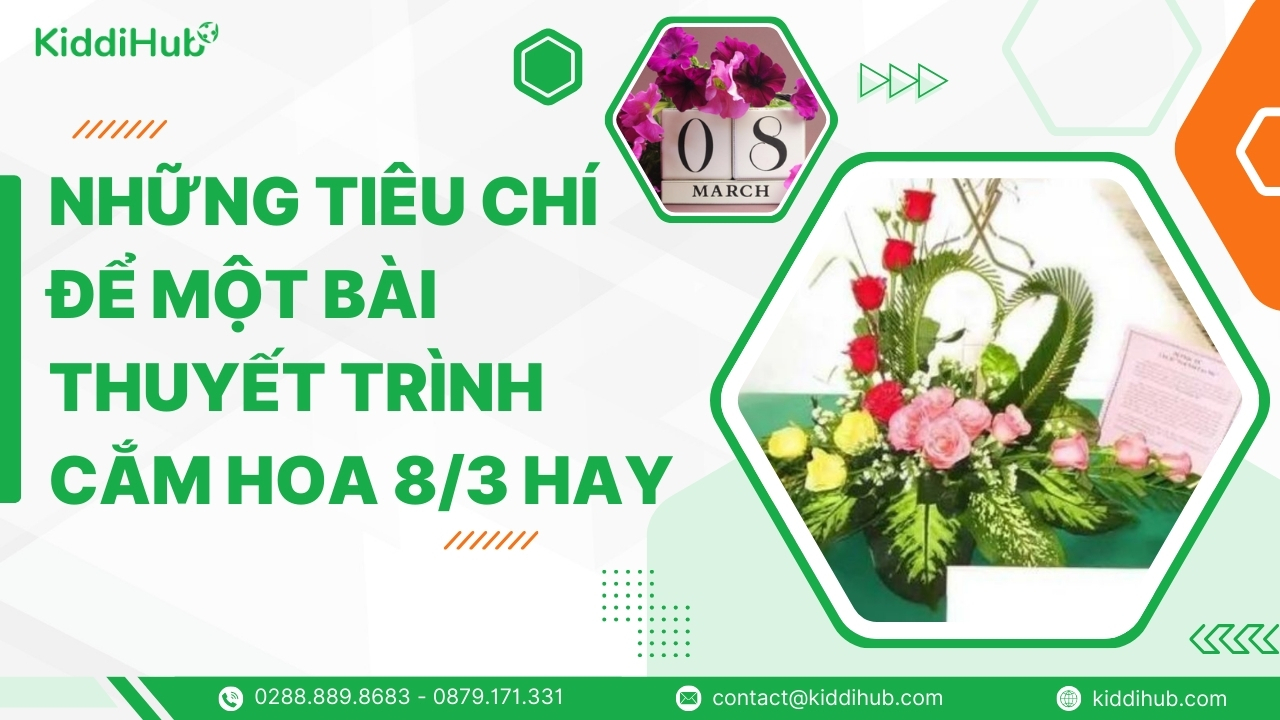 Một bài thuyết trình cắm hoa 8/3 hay không chỉ nằm ở tác phẩm đẹp mà còn ở cách bạn kể câu chuyện đằng sau từng bông hoa. Trong nội dung dưới đây, KiddiHub giúp bạn khám phá những tiêu chí quan trọng để bài thuyết trình tỏa sáng và chạm đến trái tim người nghe.