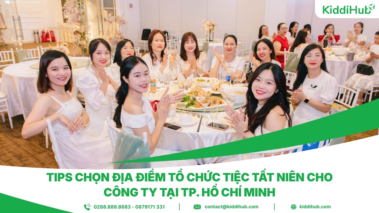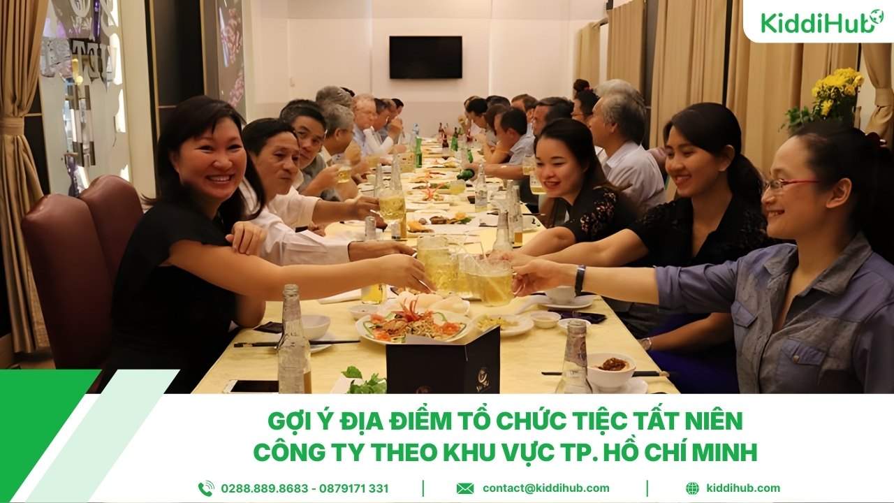 Cuối năm là dịp để doanh nghiệp nhìn lại chặng đường đã qua và gắn kết đội ngũ nhân sự. Tuy nhiên, tổ chức tiệc tất niên cho công ty ở đâu TP. Hồ Chí Minh luôn là câu hỏi khiến nhiều người băn khoăn. Hiểu điều đó, KiddiHub tổng hợp và gợi ý những địa điểm tổ chức tiệc tất niên phù hợp theo không gian, ngân sách và khu vực, giúp bạn dễ dàng lựa chọn nơi lý tưởng cho buổi tiệc trọn vẹn.