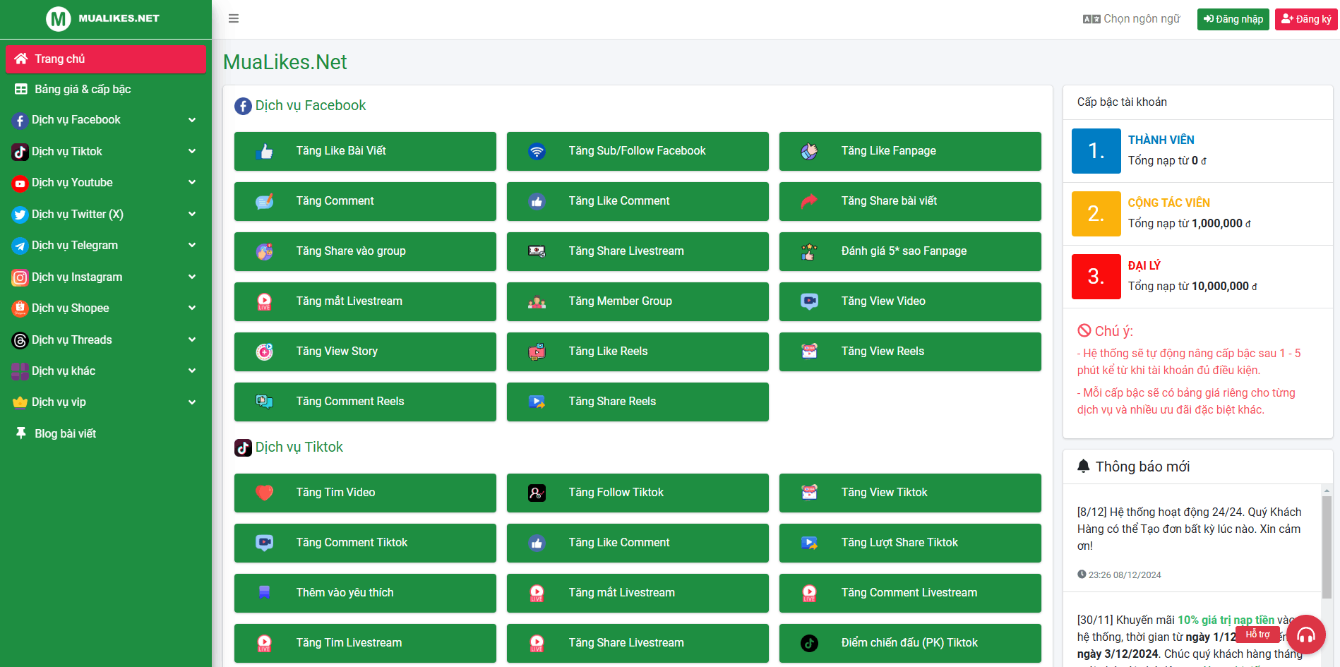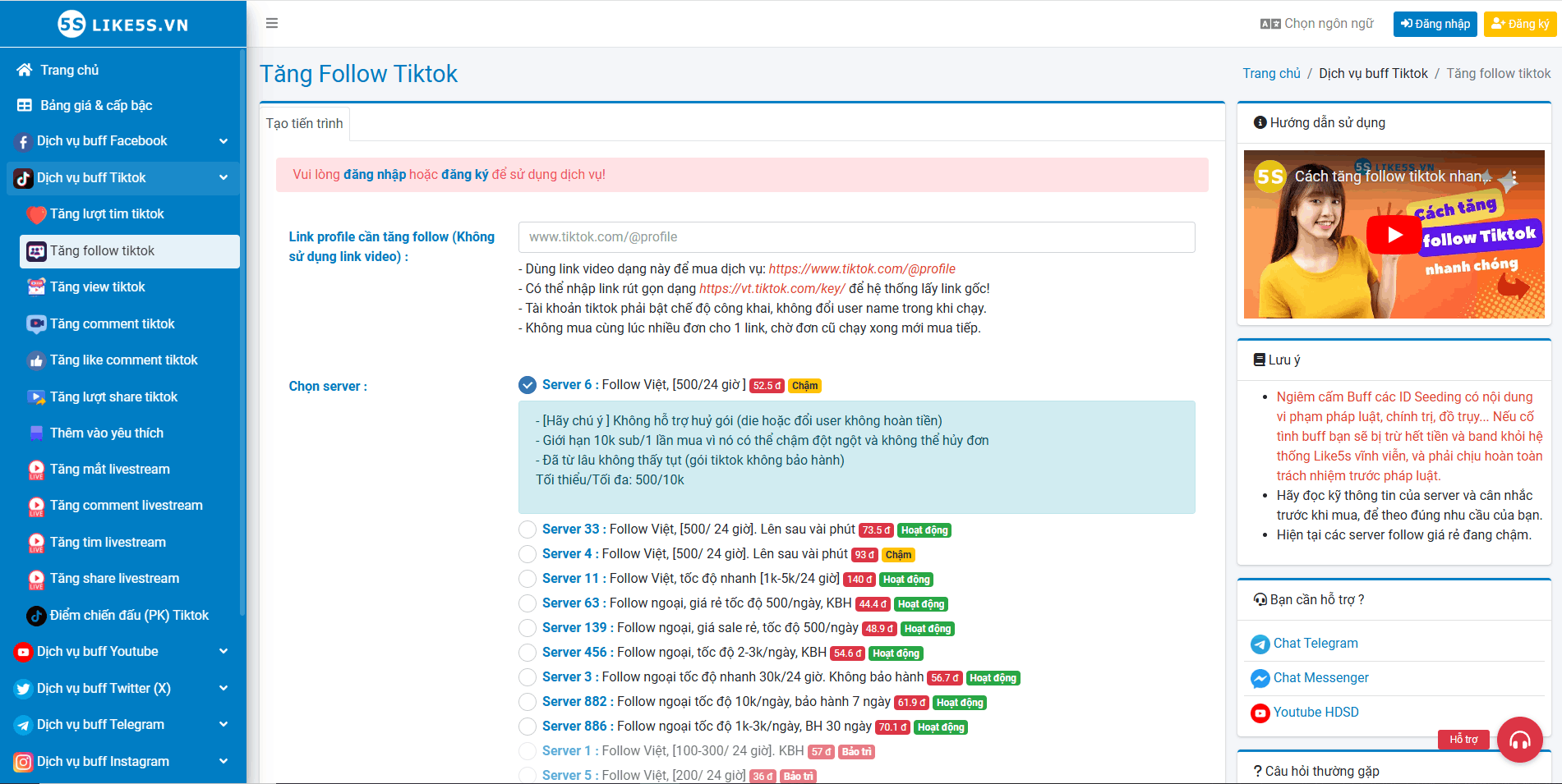 Like5s.VN là nền tảng nổi bật cung cấp các dịch vụ tăng follow Tiktok, like, view, và tương tác cho TikTok. Dù dịch vụ chủ yếu là trả phí, Like5s cũng thường xuyên tổ chức các chương trình khuyến mãi và gói dùng thử miễn phí, giúp người dùng tăng follow TikTok mà không mất chi phí.