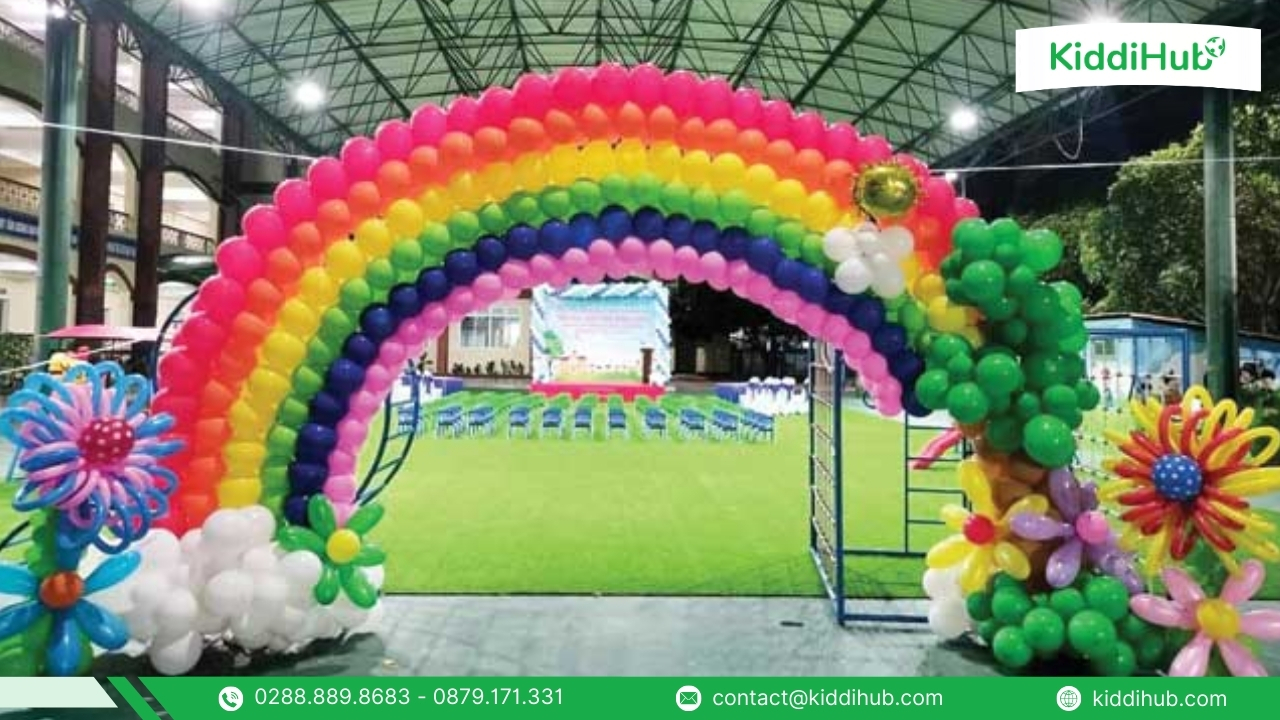 Cổng chào là khu vực đầu tiên đón các bé trong ngày Quốc tế Thiếu nhi 1/6, vì vậy cần được trang trí thật nổi bật và sinh động. Sự kết hợp hài hòa giữa màu sắc tươi vui, hình ảnh đáng yêu và bố cục bắt mắt sẽ giúp không gian thêm phần rộn ràng. Hãy cùng KiddiHub xem những hình ảnh dưới đây để có thêm ý tưởng trang trí phù hợp nhé!